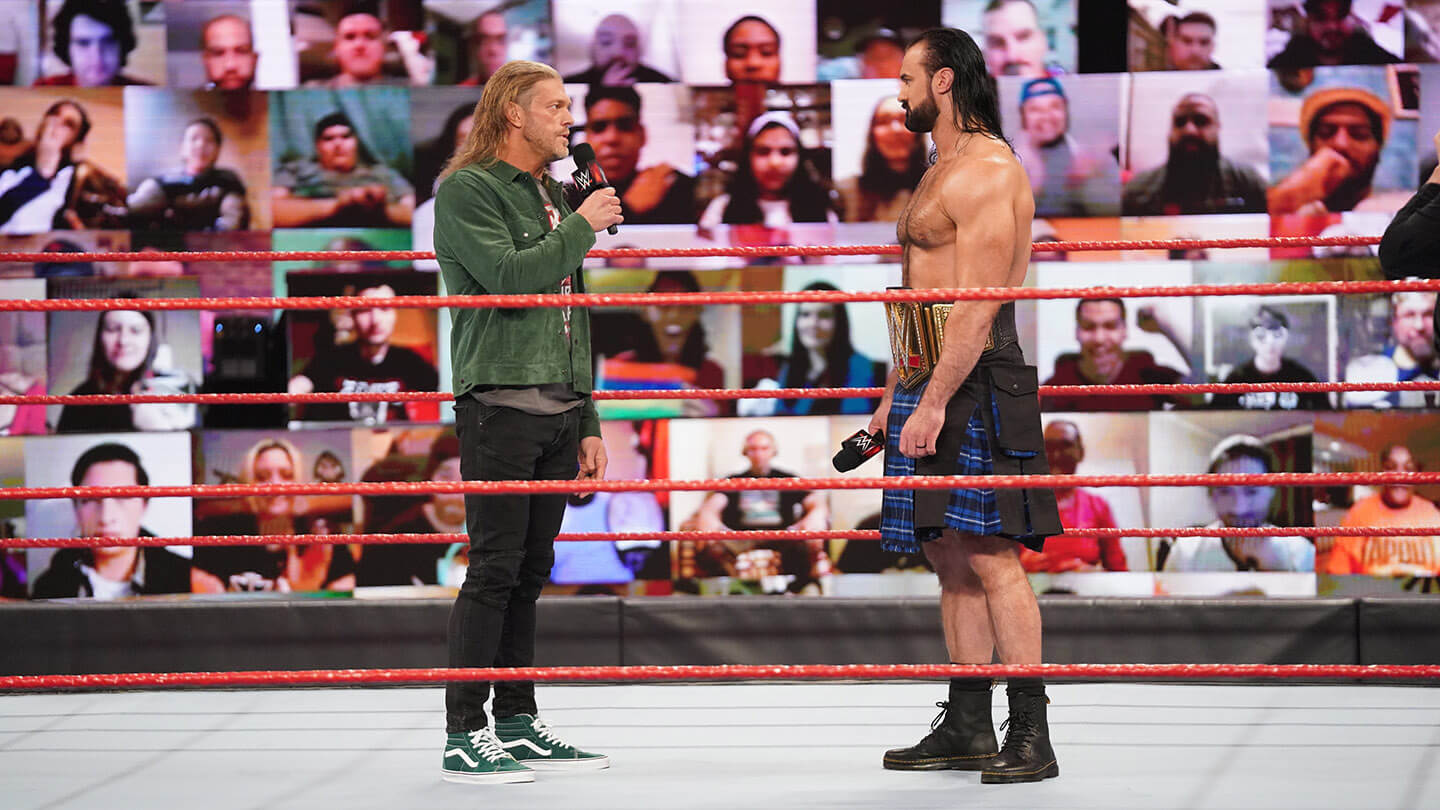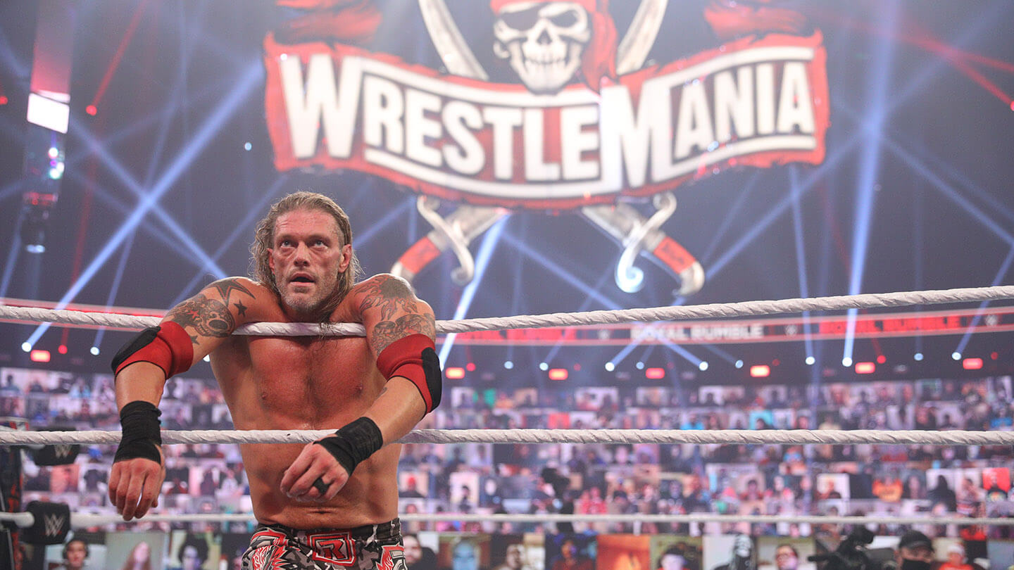 Until Adam Copeland walked into the dressing room an hour or so before the 2021 Royal Rumble, no one knew the return of Edge was in the works. Maybe it’s the “re-return” of Edge, but we’ll get to that. Suffice it to say, a development like that for a PPV is usually, usually, subject to hype, not secrecy. Suffice it to say, if it’s a surprise turn for the crowd, the principals are in on it. But we live, as they say in the famous curse, in interesting times, and there wasn’t anyone in the stands — so if someone had to be caught unawares, that left those whose numbers would be called.