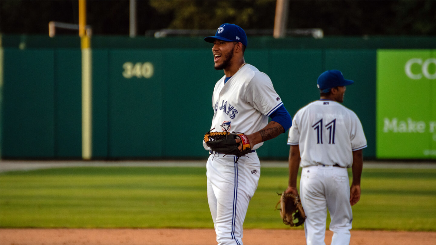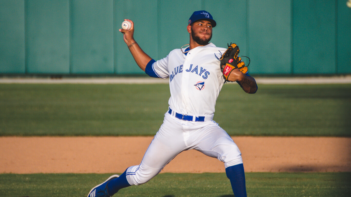 “Sim is one of the fiercest competitors we have in the organization. That guy just wants to beat you when he’s on the mound,” says Gil Kim, Toronto’s director of player development. “Sim doesn’t back down. For him to be that way at his age, at a high level, while coming in to a new organization — it’s impressive. Not just his performance but how confident he is in himself and how strong his mound presence is.”