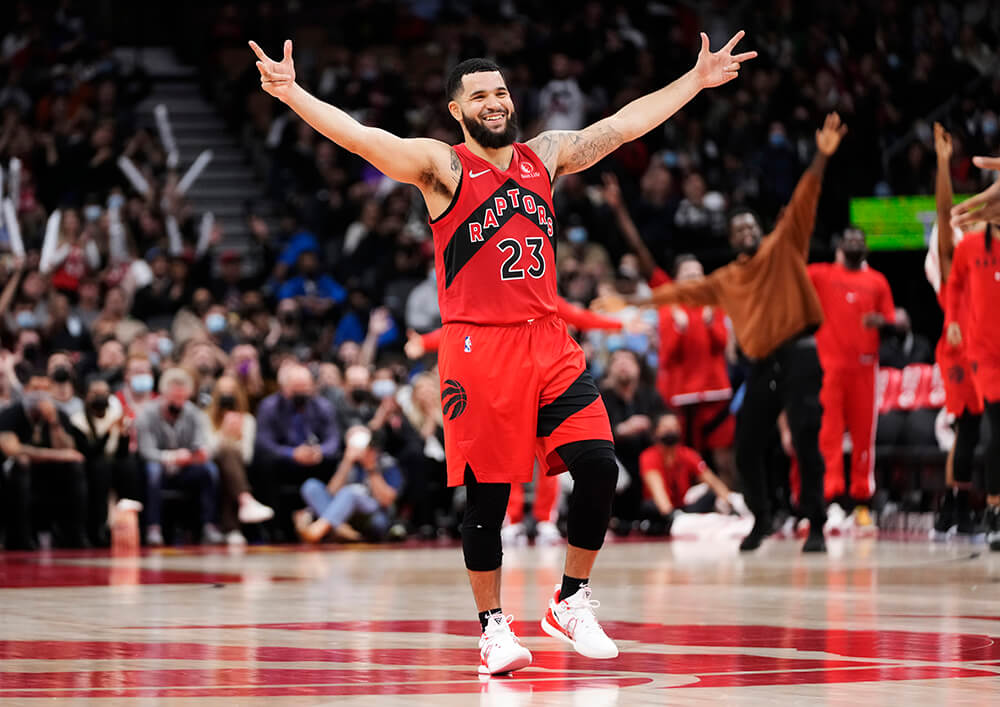 It’s a message that resonates, both in its content and delivery. “As a young guy who’s undrafted and trying to make a way for himself in this league, and trying to provide for his family, those guys are the stepping stones,” says Raptors rookie Justin Champagnie, who has pushed his way into head coach Nick Nurse’s rotation of late. “Especially Fred being undrafted like myself. Just trying to follow behind the footsteps, just consistently work and wait your turn and, when it comes, be ready to shine.”